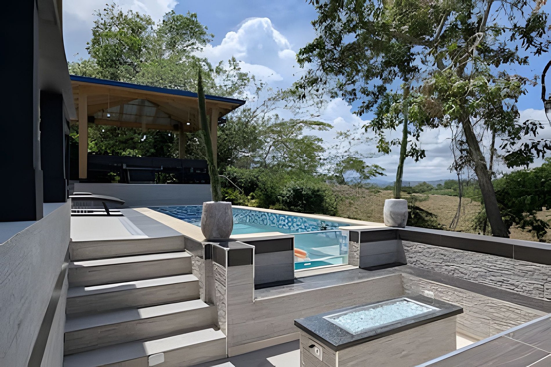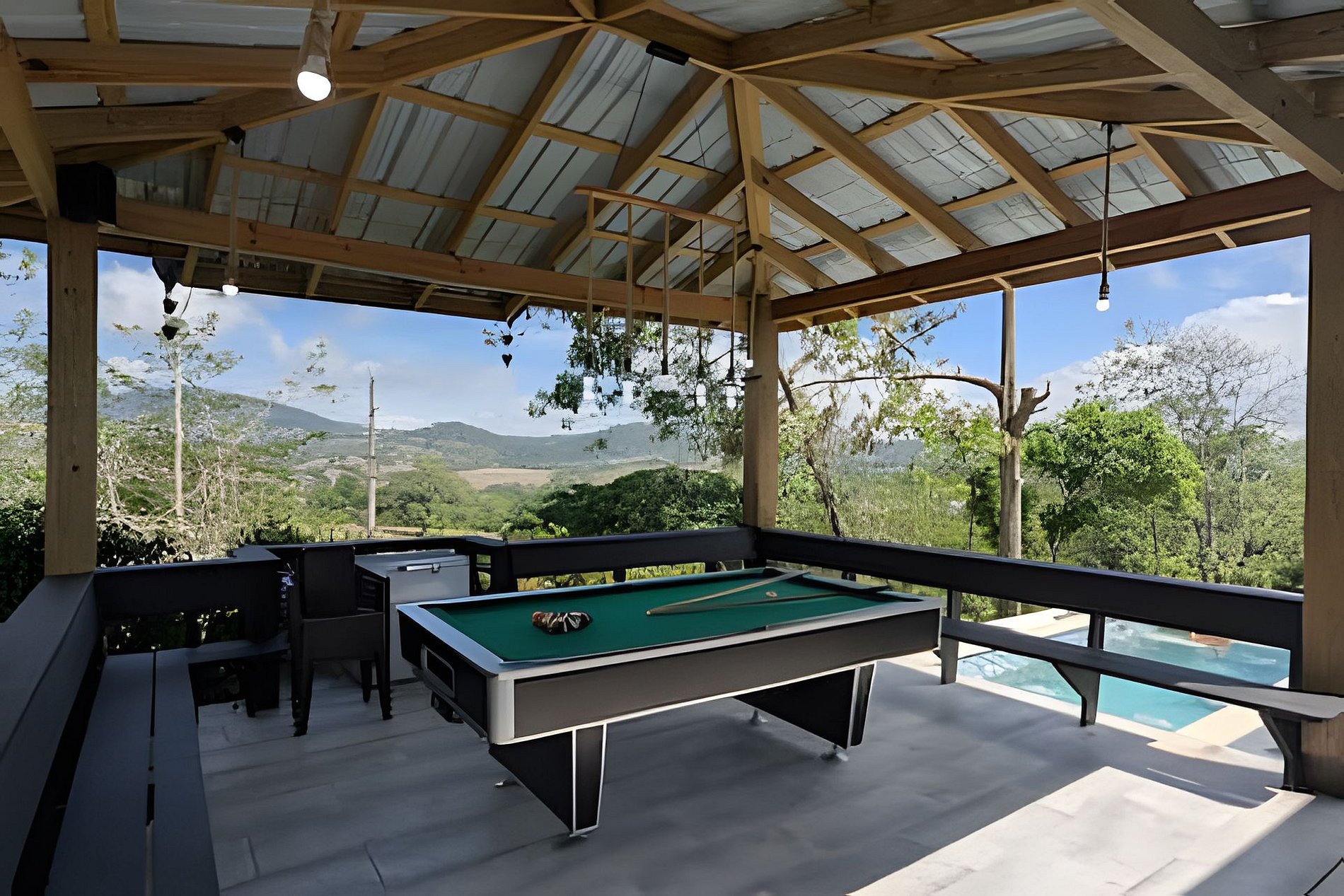 - Una vista espectacular de montañas, visible desde el pasillo lateral derecho, el pasillo trasero, el patio, el área de billar, la piscina, el comedor, la fogata y la cocina exterior. La panorámica se abre de lado a lado, ofreciendo un escenario natural único.
