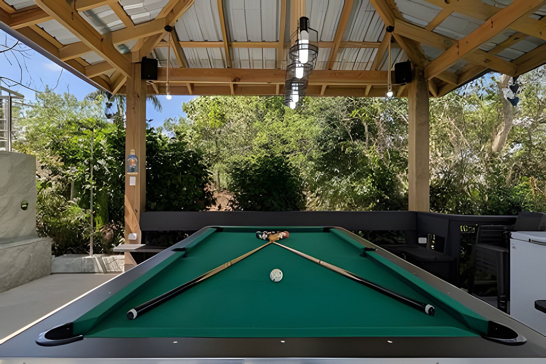 - Gazebo con mesa de billar, freezer y sonido Bluetooth HQ