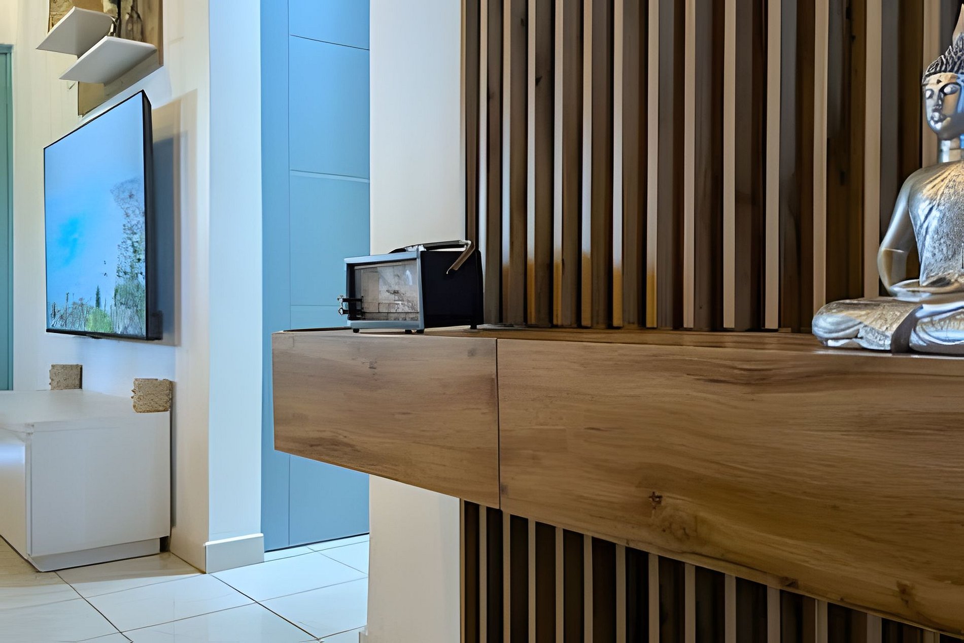 - Sala con Smart TV de 55" y sofá cama (cama de 54" para 2 personas)
