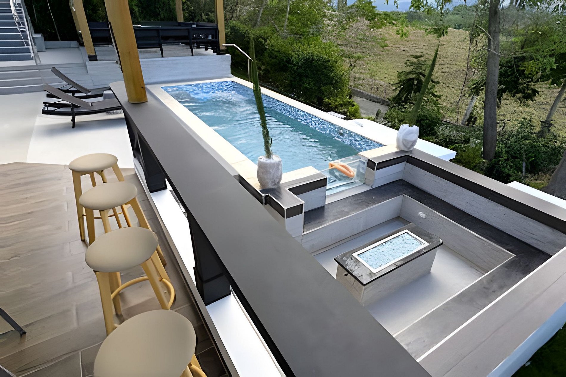 - Una vista espectacular de montañas, visible desde el pasillo lateral derecho, el pasillo trasero, el patio, el área de billar, la piscina, el comedor, la fogata y la cocina exterior. La panorámica se abre de lado a lado, ofreciendo un escenario natural único.