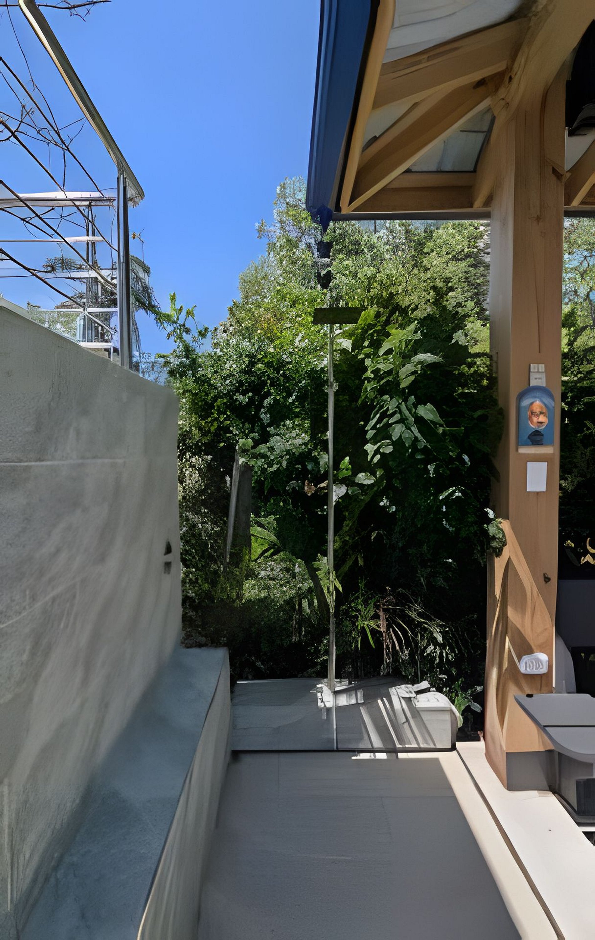 La propiedad cuenta con espacio en el que pueden estacionarse hasta 4 vehículos, y sin embargo, también pueden estacionarse en la calle, frente a la casa, debido a que la zona es cerrada, y solo se entra por un portón. La casa está rodeada por un balcón, elevado en su mayor parte, lo cual le provee de una vista privilegiada hacia la naturaleza y las montañas.