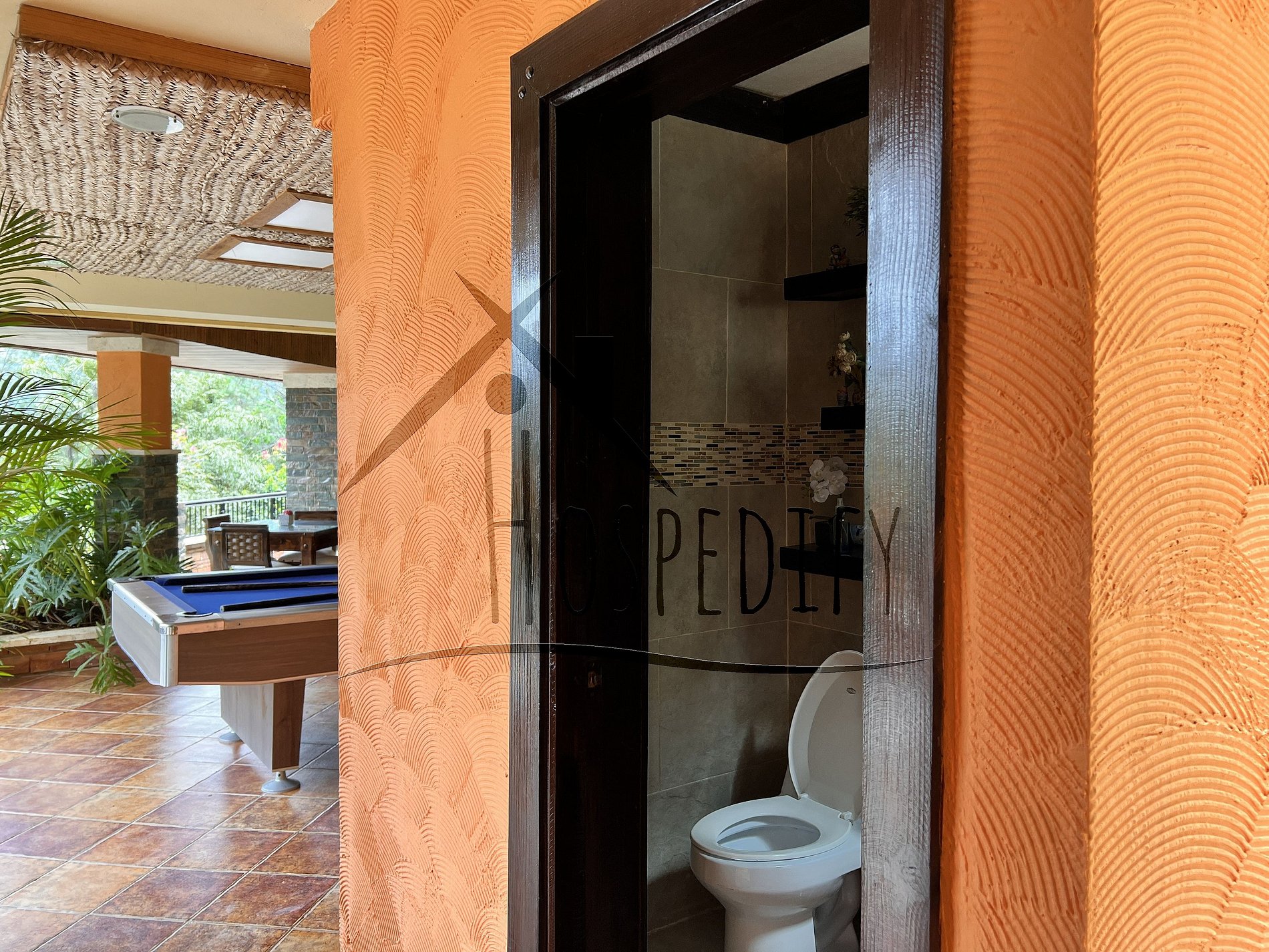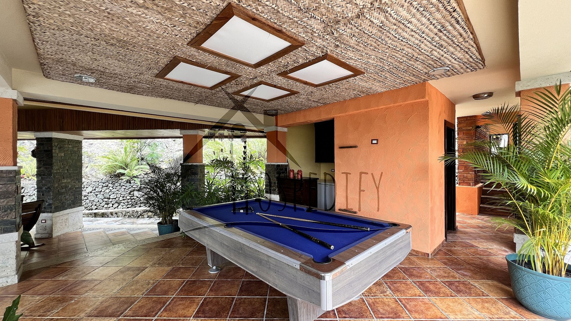 Nuestra villa cuenta con 6 habitaciones elegantemente decoradas y 5 baños y medio, ofreciendo comodidad y privacidad para todos los huéspedes. Relájate en la amplia sala de estar, desafía a tus amigos en la mesa de billar o en la mesa de dominó, y disfruta de la piscina climatizada con vistas a las montañas, perfecta para un chapuzón refrescante en cualquier momento del año.