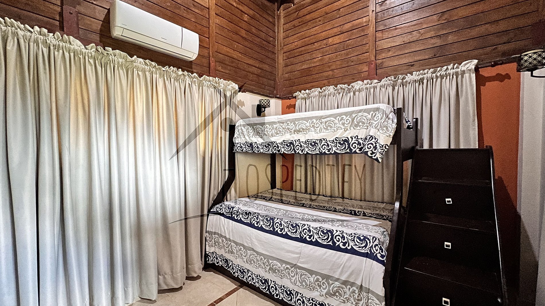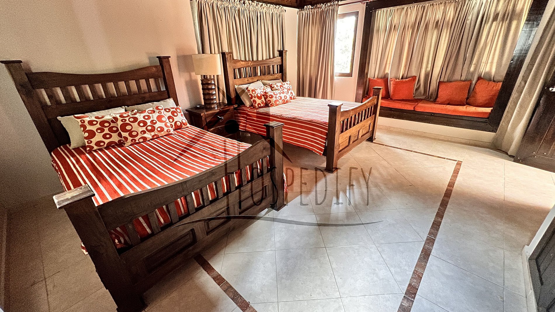 1- La propiedad tiene una habitación con capacidad para 6 personas, que anteriormente era una sala de entretenimiento, y no tenía baño. En un futuro le haremos un baño a esta habitación, sin embargo, mientras tanto, quienes reserven esta propiedad, deben tomar en cuenta que esa habitación no tiene baño, y quienes allí se hospeden, deberán utilizar el baño de otra. Aparte de esa, todas las demás tienen su baño;