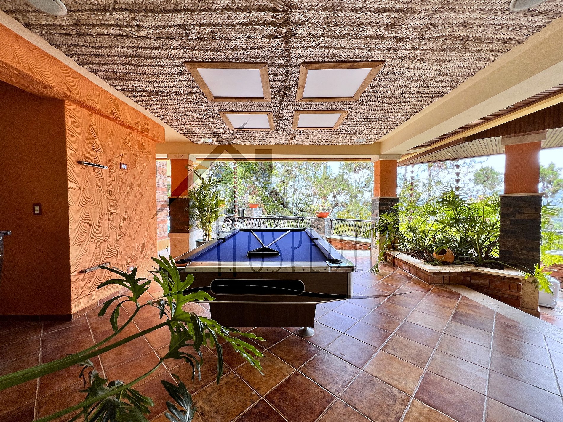 Nuestra villa cuenta con 6 habitaciones elegantemente decoradas y 5 baños y medio, ofreciendo comodidad y privacidad para todos los huéspedes. Relájate en la amplia sala de estar, desafía a tus amigos en la mesa de billar o en la mesa de dominó, y disfruta de la piscina climatizada con vistas a las montañas, perfecta para un chapuzón refrescante en cualquier momento del año.