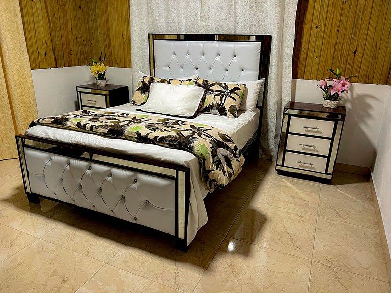 En la casa encontrará un comedor para 4 personas, cocina equipada, con todos los electrodomésticos y utensilios. Tiene 2 habitaciones con camas matrimoniales en ambas, con sus sábanas y accesorios de cama.