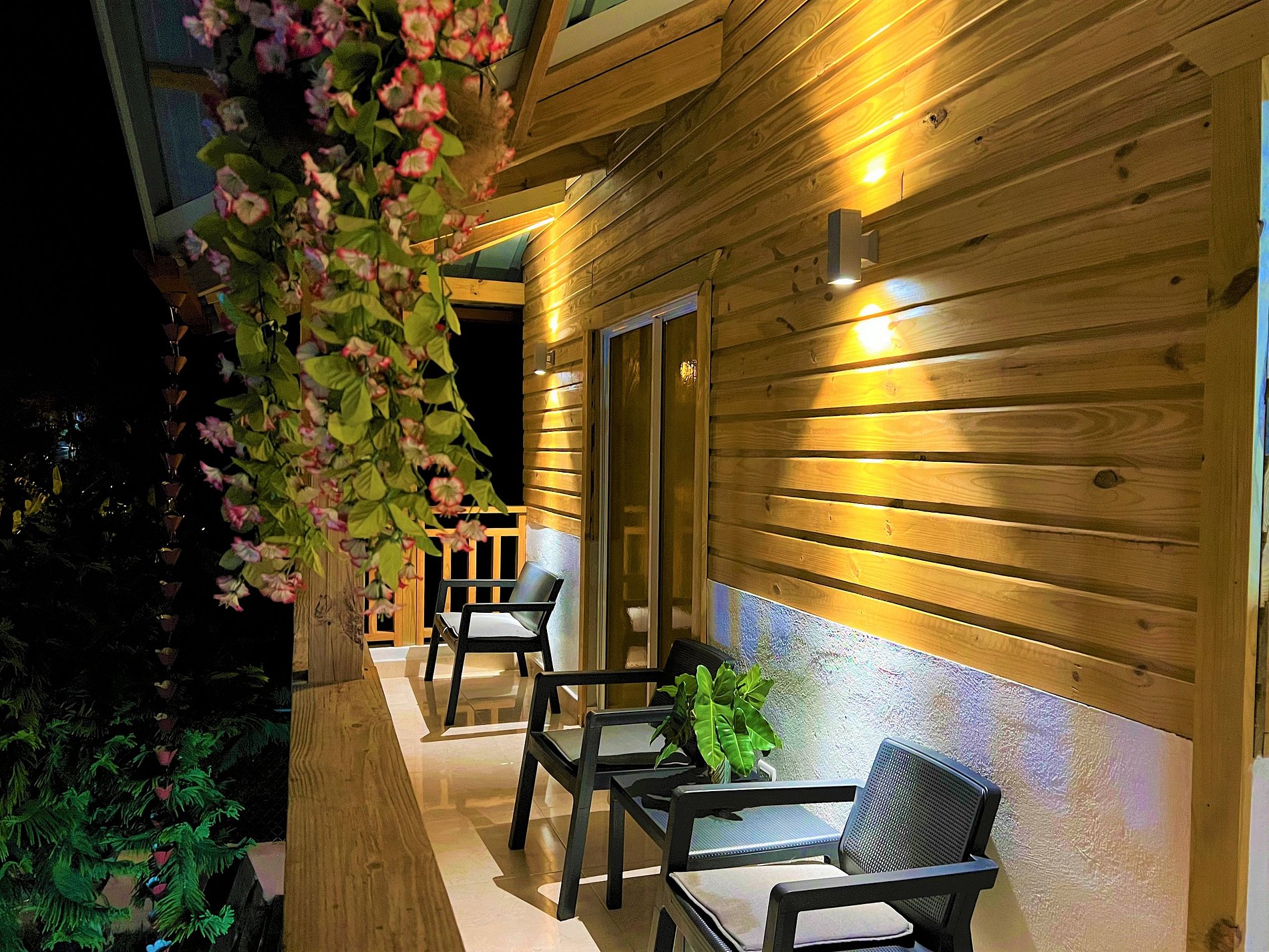 El balcón cuenta con mobiliario exterior para disfrutar del atardecer en las montañas y respirar el aire fresco.